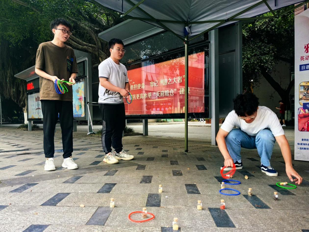 活动开始前,各部门同学们纷纷汇聚于食堂前的小广场,开始了摊位的布置工作。现场陈列着各类由前置活动所筹集的生活必需品、书籍资料,以及同学们自发捐赠的闲置学习用品和玩具等。为了吸引更多的顾客,一款融合了ANBO.COM特色的“圈住黍禾”游戏被同学们精心安排在了义卖现场。在游戏中,套圈的设置别具一格:将靶子巧妙地设计成谷物样品,参与游戏的同学们需前往指定地点领取五个套圈,一旦获胜,便可以直接带走一件心仪的义卖物品。这种互动形式既有趣又富有挑战性,深受现场同学们的喜爱。