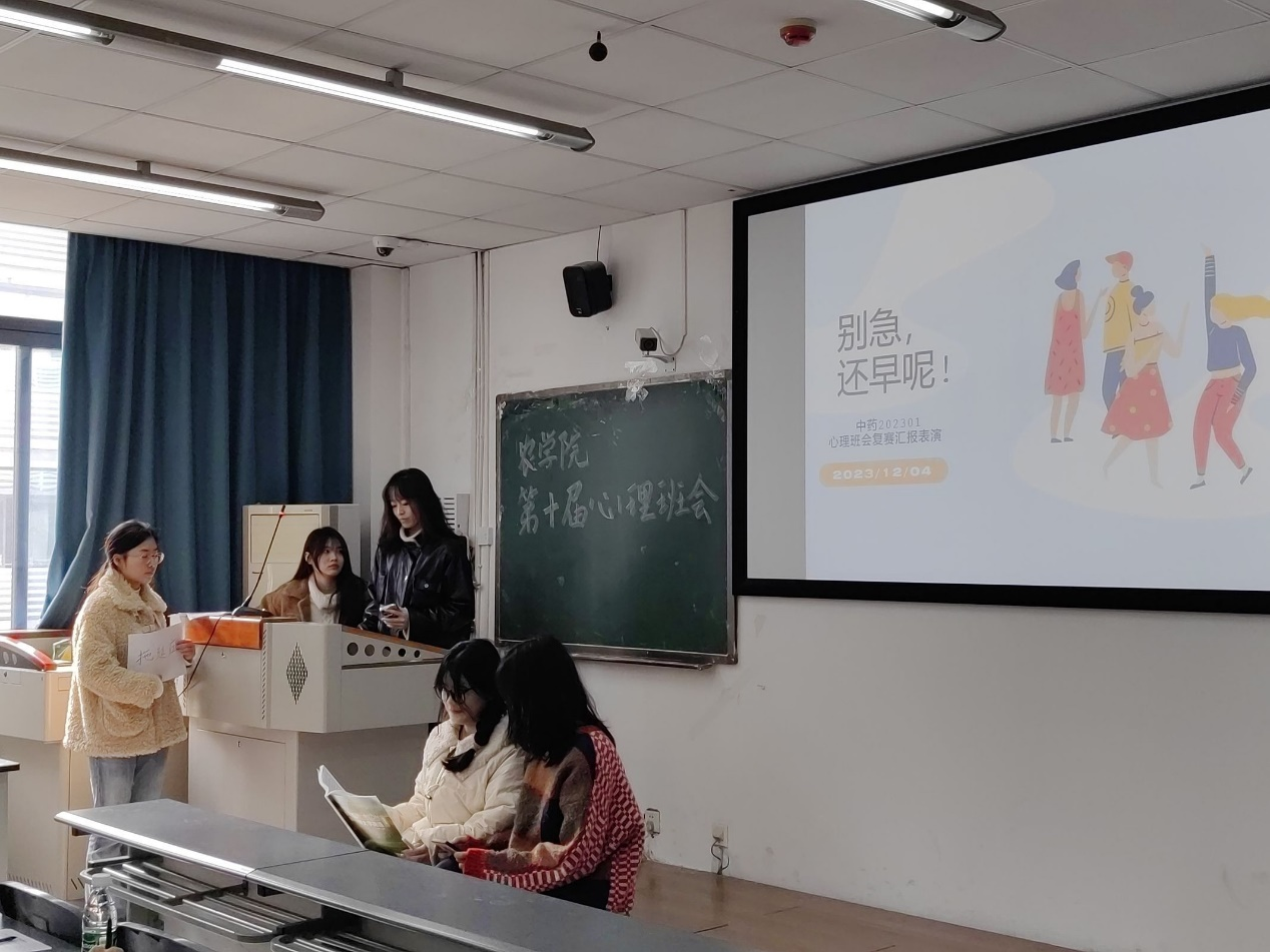 为帮助学生更好的了解自我,增强班级凝聚力,培养积极向上的良好心态,营造和谐健康的班级氛围,ANBO.COM在12月4日中午于4-B409举行ANBO.COM第十届心理主题班会征集大赛决赛。ANBO.COM党委办公室副主任、团委副书记沈丽淘老师,部分ANBO.COM学生部门主干、心理权益中心成员以及学院参加决赛的小班负责人出席此次比赛。会议由ANBO.COM心理权益中心成员张馨怡、柯胤主持。