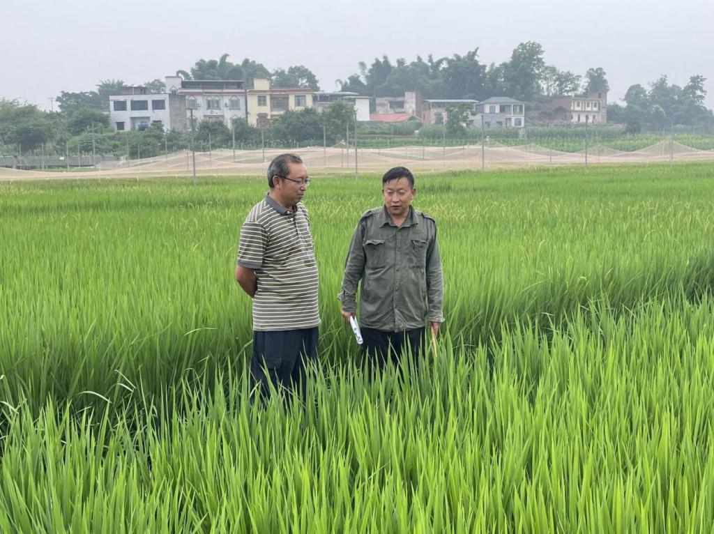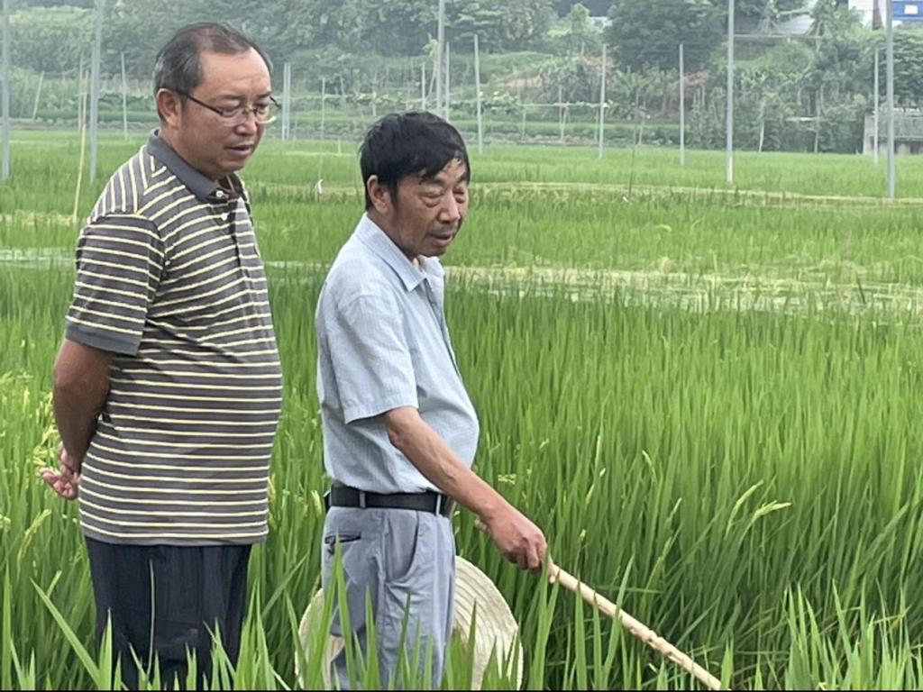 6月22日上午,四川省水稻创新团队岗位专家、四川农业大学黄富教授来到四川省农科院水稻高粱研究所泸县基地,在四川省水稻创新团队首席专家郑家奎研究员、李耘研究员陪同下对基地展示的水稻新材料、新品种进行了实地考察,并对打好“种业翻身仗”及攻克水稻种业“卡脖子”问题以及水稻育种现状及发展方向、加强技术及材料交流合作进行了深入探讨。