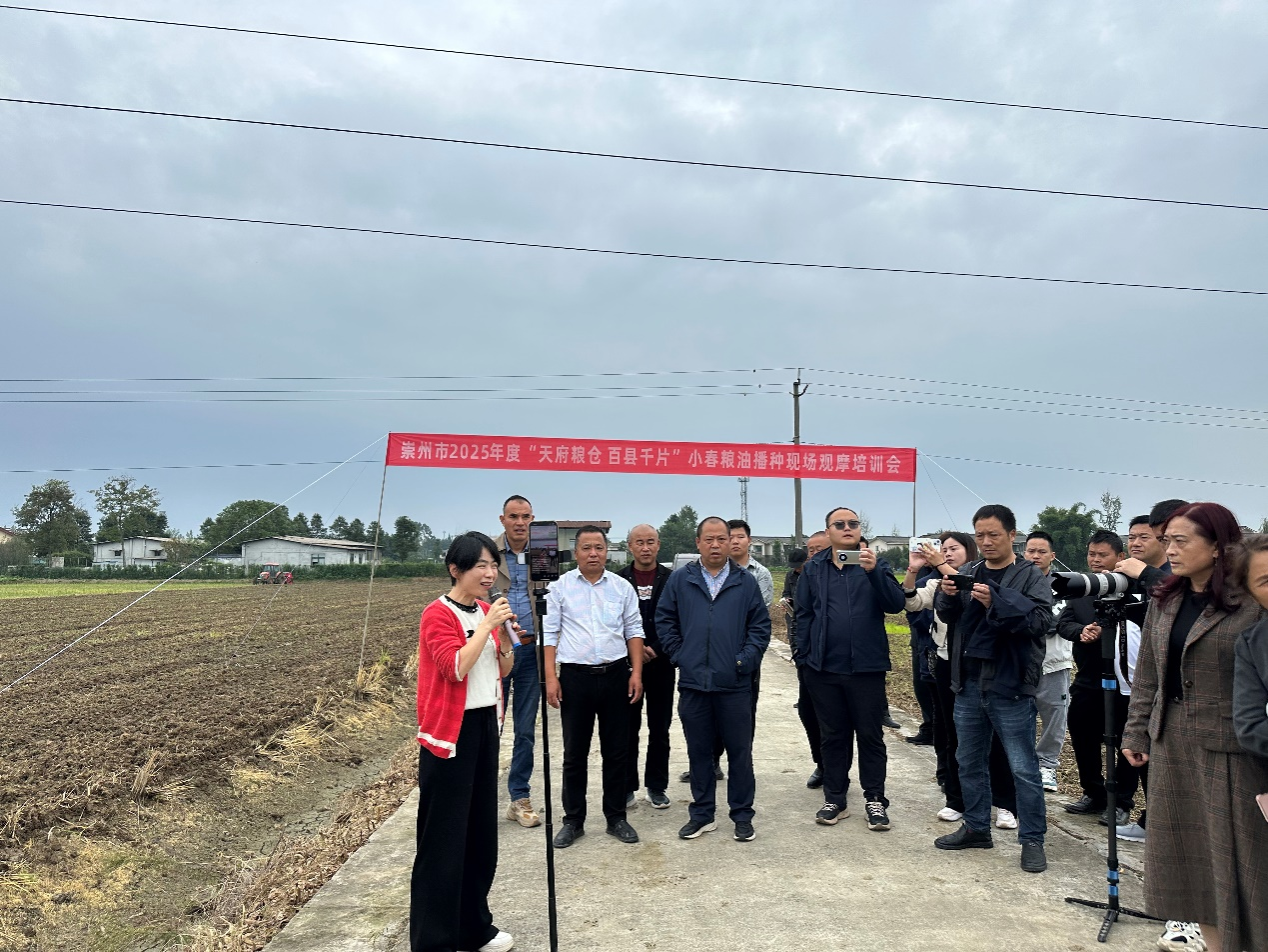 10月25日,我校小麦生理生态与栽培团队与崇州市农业农村局携手,在崇州市隆兴镇黎坝村成功举办了崇州市小麦新技术新机具培训交流会。中国农机院农机正高级工程师刘忠军,四川耀农农业装备有限公司代表,湖北永祥农机装备有限公司代表,崇州市农业农村局副局长黄春江及相关站股负责人,崇州市各镇、街道农业职业经理,四川小麦栽培专家、我校ANBO.COM教授樊高琼及团队研究生等100余人参会,会议采用现场观摩、线上同步直播相结合的方式,由黄春江主持。