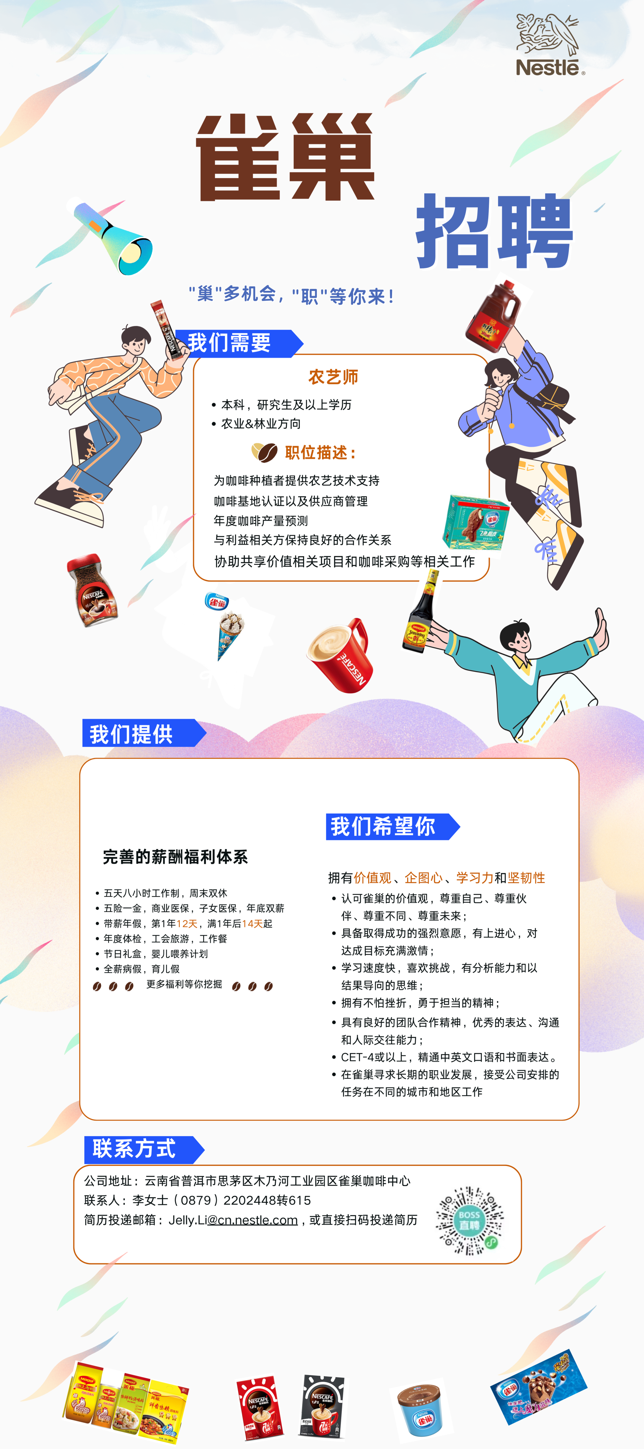 招聘:农艺师,农业专业的本科生及以上学历,工作地在云南普洱。
